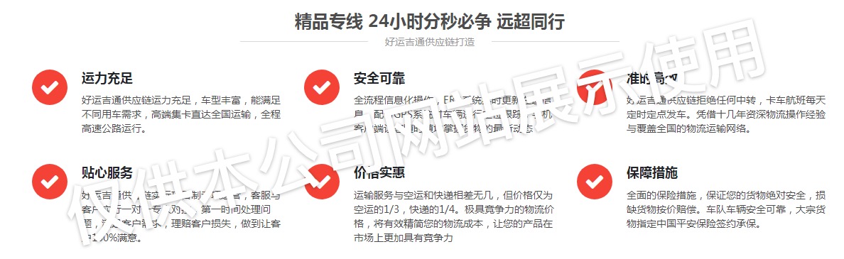 好運(yùn)吉通供應(yīng)鏈愿景:讓貨主得到專業(yè)負(fù)責(zé)、快捷方便的物流運(yùn)輸服務(wù),讓好運(yùn)吉通供應(yīng)鏈成為運(yùn)輸行業(yè)內(nèi)最好的物流服務(wù)提供者。