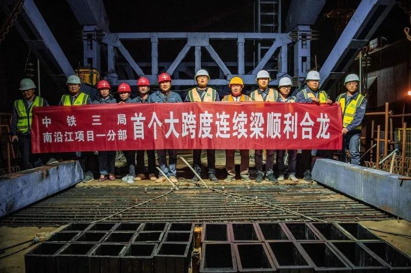 南沿江城際鐵路張家港段首個超100米跨連續(xù)梁順利合龍